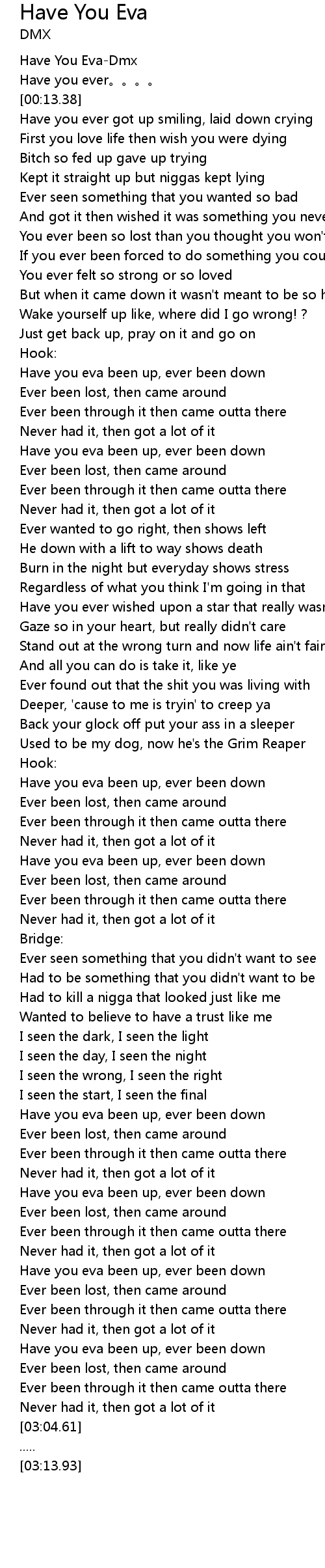 | [00:00.88] | Have You Eva-Dmx |