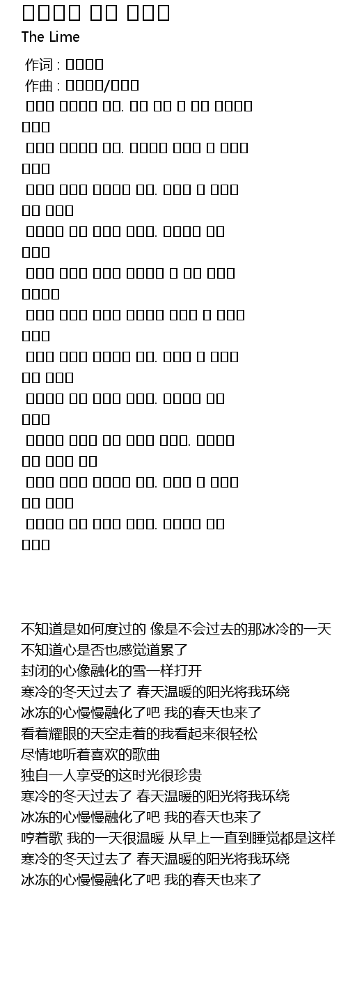 | [02:36.859] | 얼어붙은 맘이 샤르르 녹았죠. 나에게도 봄이 오네요 |