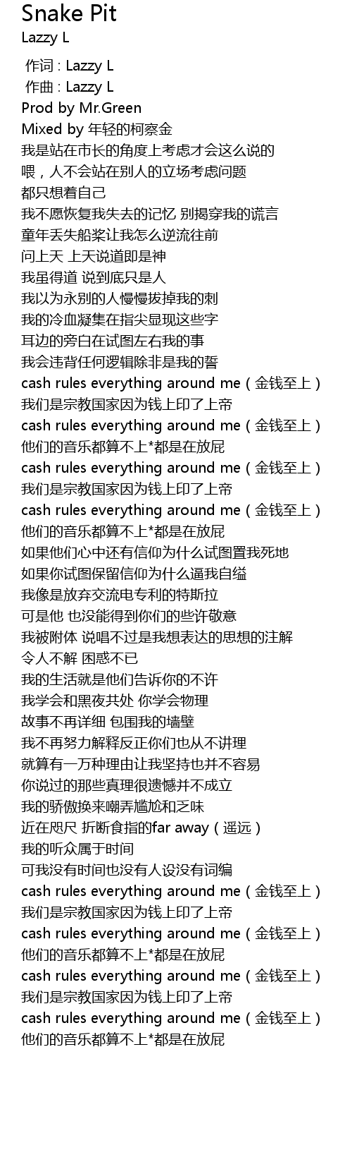 | [00:53.477] | cash rules everything around me(金钱至上) |