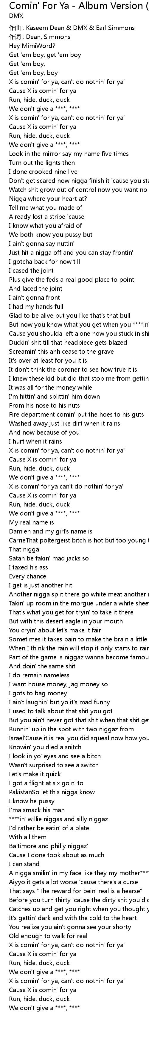 | 作曲 : Kaseem Dean & DMX & Earl Simmons | |