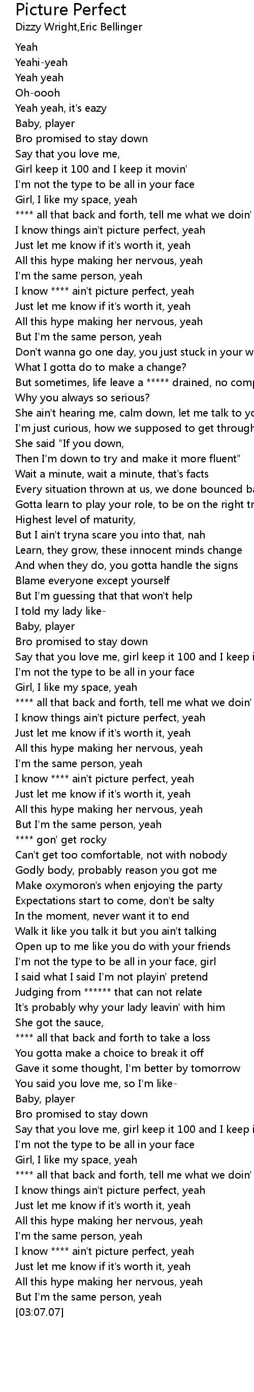 I know **** ain't picture perfect, yeah |