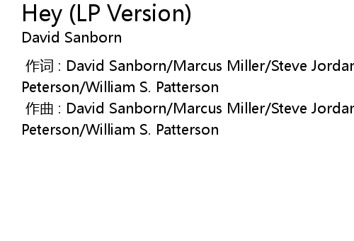 | [00:00.000] | zuo qu : David Sanborn Marcus Miller Steve Jordan Ricky Peterson William S. Patterson |