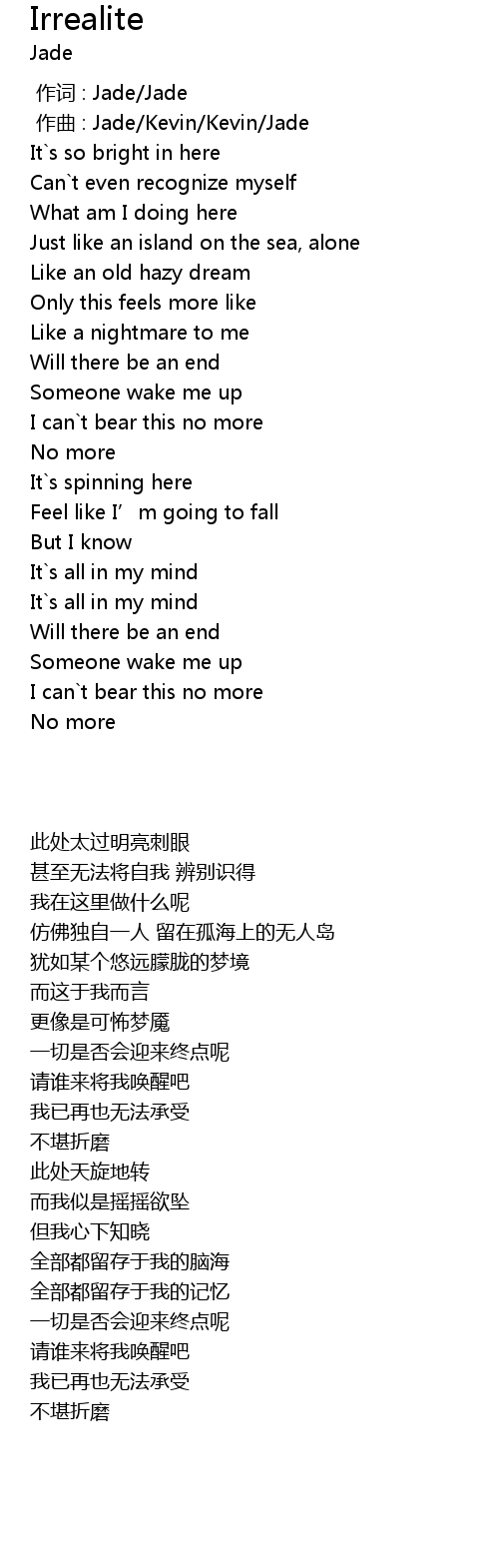 | [00:01.000] | zuo qu : Jade Kevin Kevin Jade |