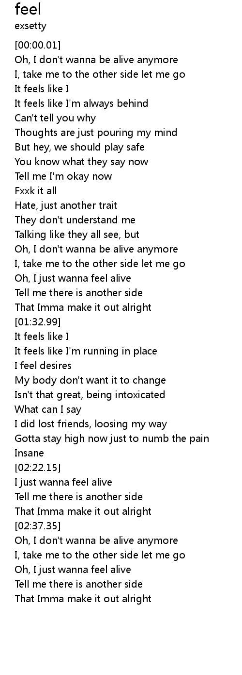 | [00:16.54] | Oh, I don't wanna be alive anymore |