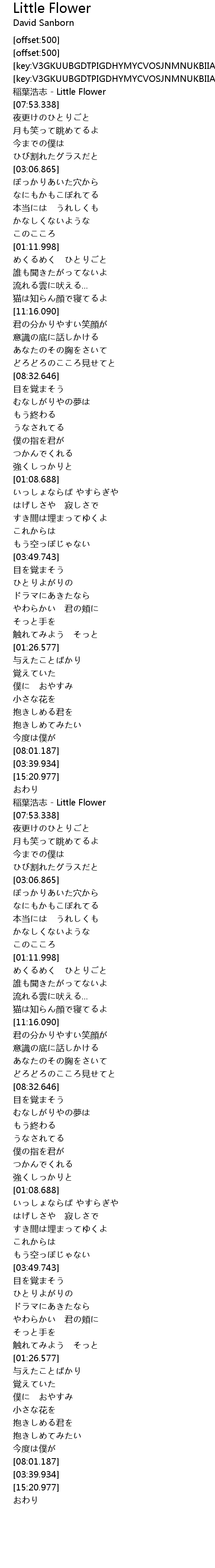| [09:16.282] | 稲葉浩志 - Little Flower |