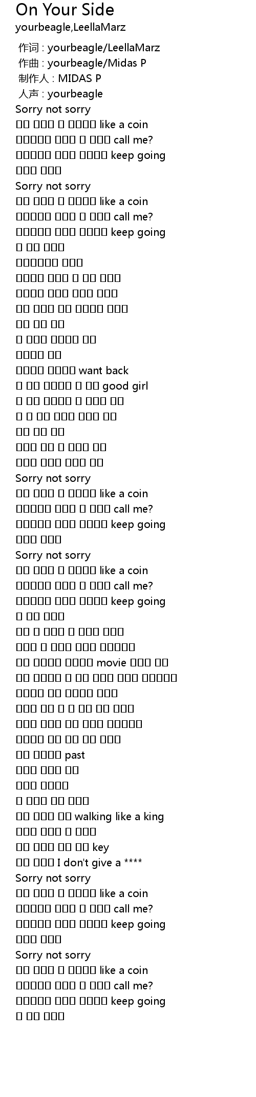 | [00:01.000] | zuo qu : yourbeagle Midas P |