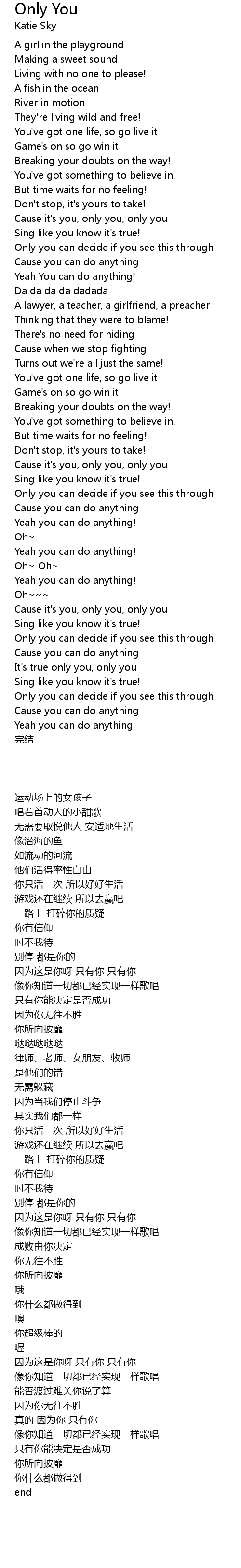 | [01:43.48] | 因为这是你呀 只有你 只有你 |