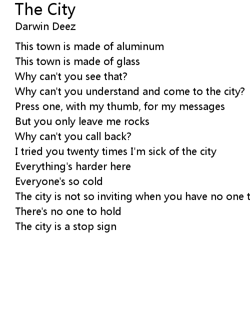 | The city is not so inviting when you have no one to hold | |