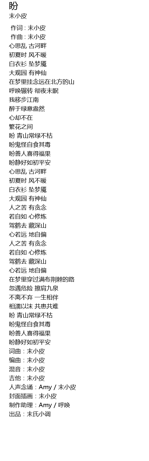 | [00:00.000] | 作词 : 末小皮 |