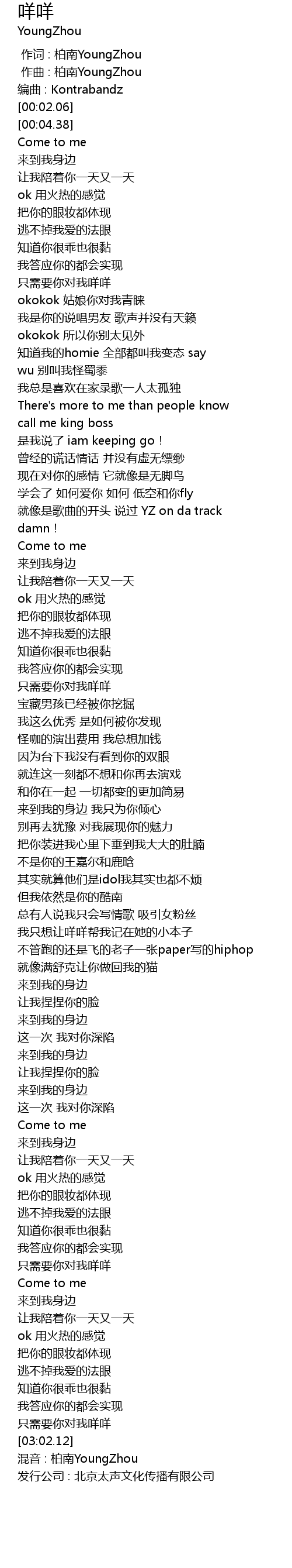 | [00:00.000] | 作词 : 柏南YoungZhou |