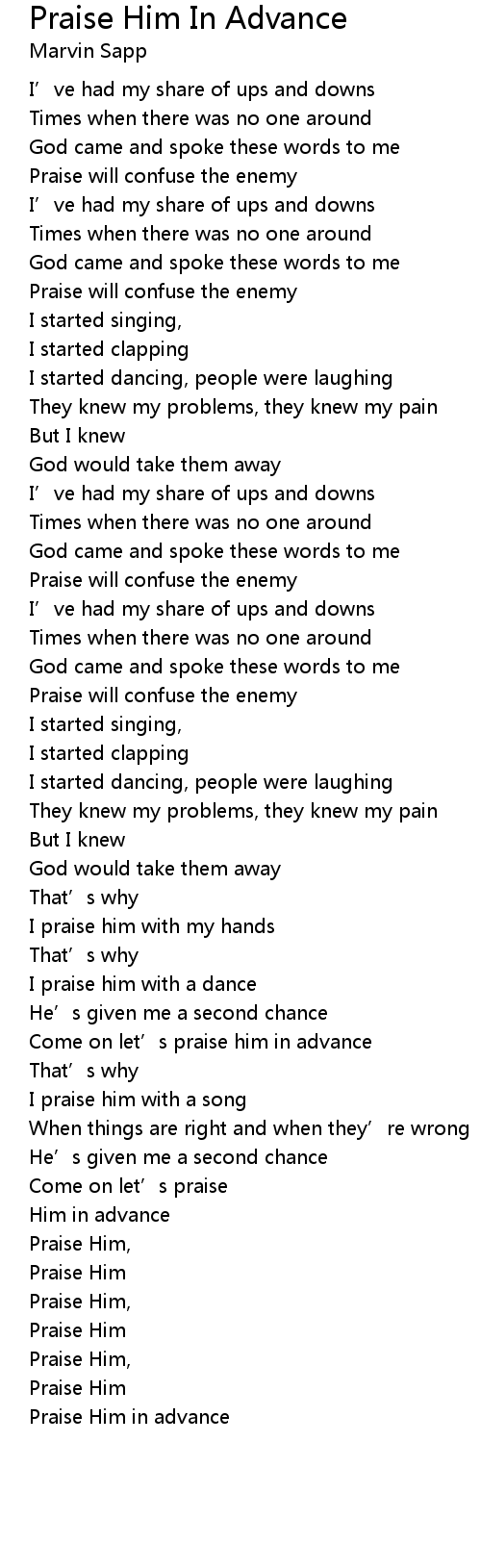 | Come on let’s praise him in advance | |
