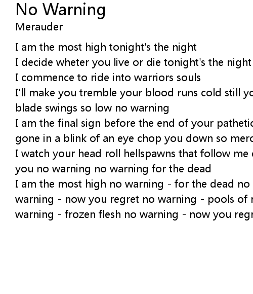 I am the most high no warning - for the dead no warning - frozen flesh no warning - now you regret no warning - pools of red no warning - for the dead no warning - frozen flesh no warning - now you regret no warning |