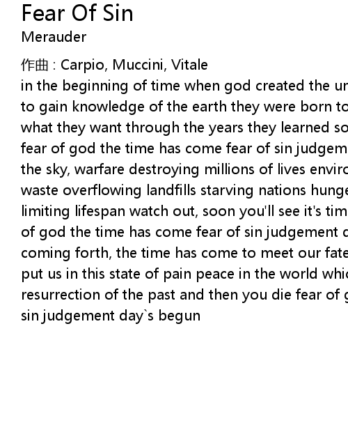 | in the beginning of time when god created the universe all men and women placed to gain knowledge of the earth they were born to freedom, the right to choose what they want through the years they learned so much something may come back fear of god the time has come fear of sin judgement day s begun death rising in the sky, warfare destroying millions of lives environmental overkill, toxic waste overflowing landfills starving nations hunger across the land, aids limiting lifespan watch out, soon you' ll see it' s time to meet your destiny fear of god the time has come fear of sin judgement day s begun devastation now coming forth, the time has come to meet our fate the freedom of choice which has put us in this state of pain peace in the world which is only one big lie, resurrection of the past and then you die fear of god the time has come fear of sin judgement day s begun |