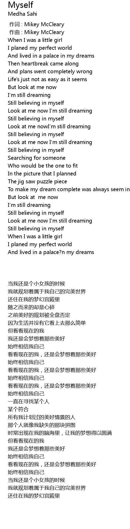 | [01:24.00] | Look at me nowI' m still dreaming |