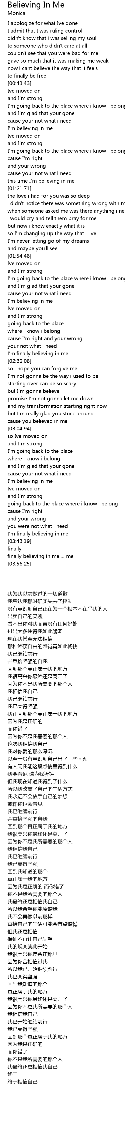 I'm finally believing in me |
