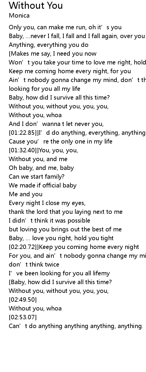 | [01:16.70] | Without you, whoa |