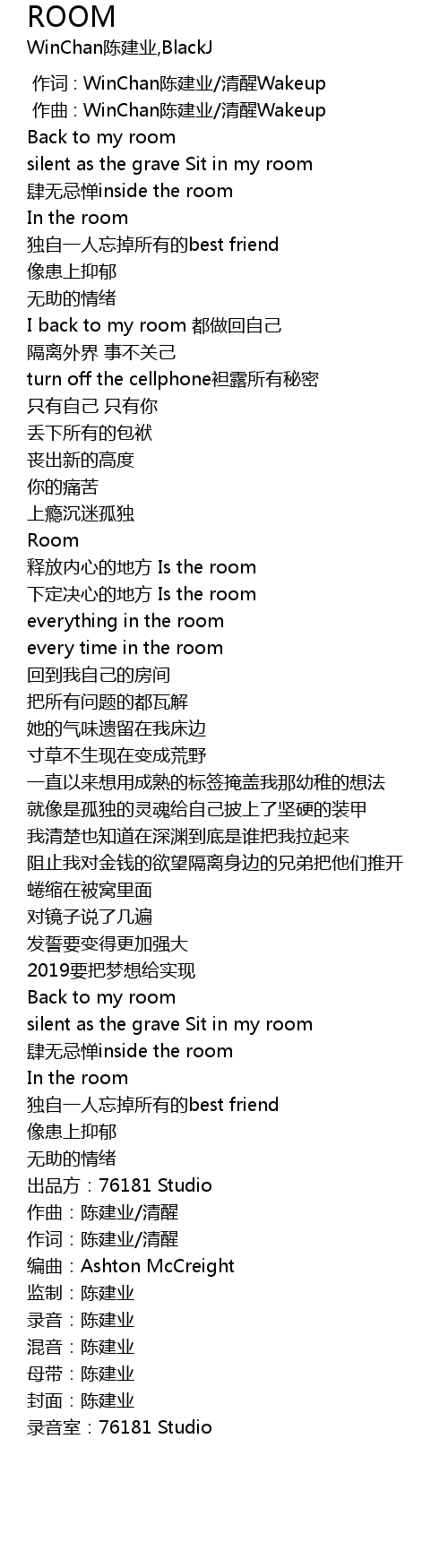 | [00:58.505] | I back to my room 都做回自己 |