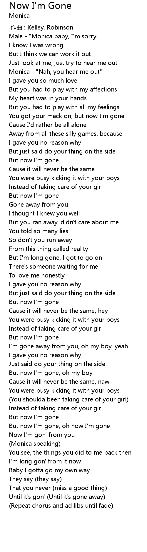 | 歌曲 | Now I'm Gone |