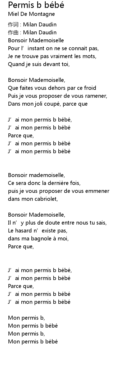 | 歌曲 | Permis b bébé |