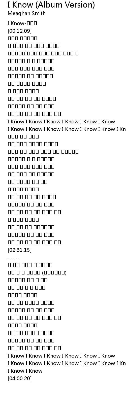 | [03:43.29] | I Know I Know I Know I Know I Know I Know I Know |