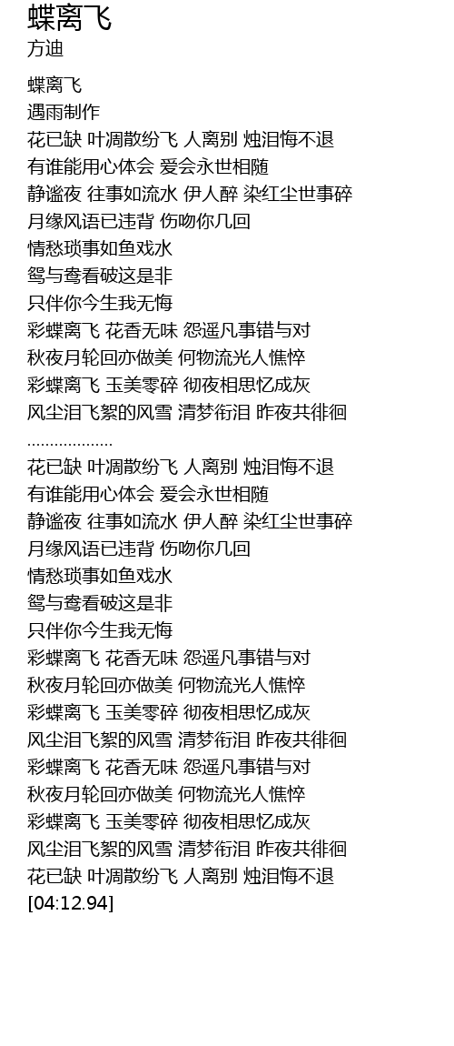| [00:03.66] | 蝶离飞 |