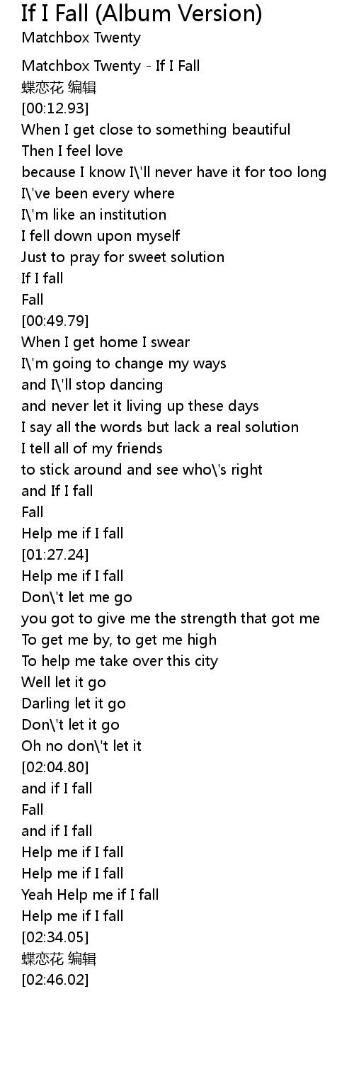 | [00:00.00] | Matchbox Twenty If I Fall |