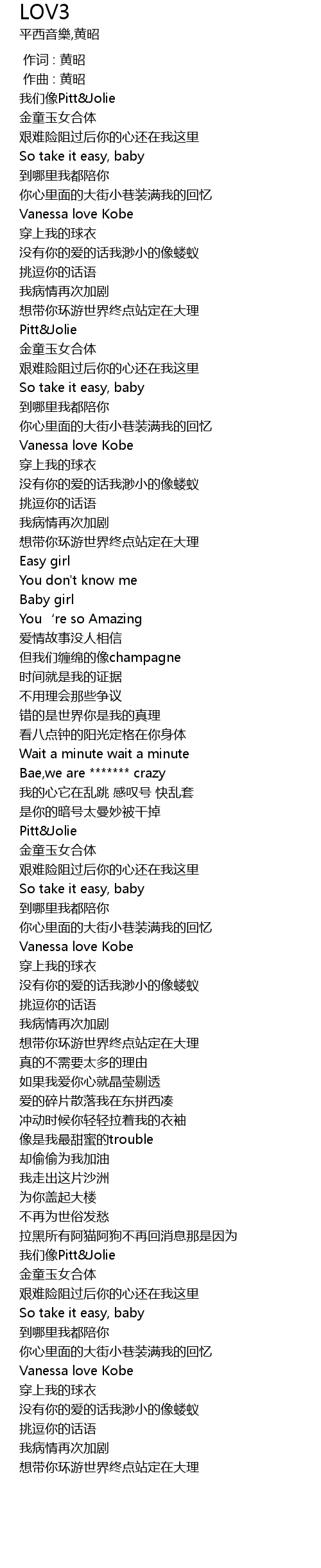 | [00:00.000] | 作词 : 黄昭 |