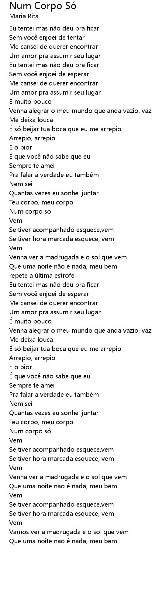 | 歌曲 | Num Corpo Só |