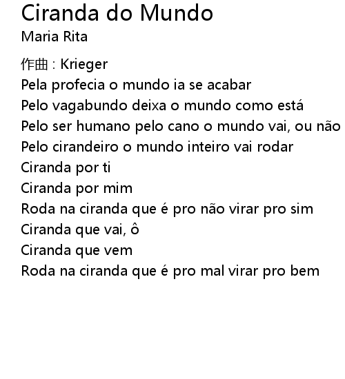| Pelo cirandeiro o mundo inteiro vai rodar | |