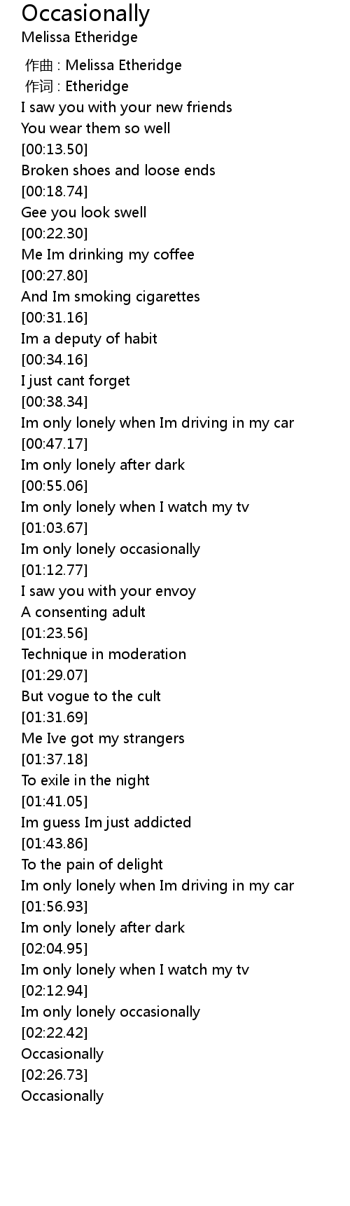 | [00:00.00] | 作曲 : Melissa Etheridge |