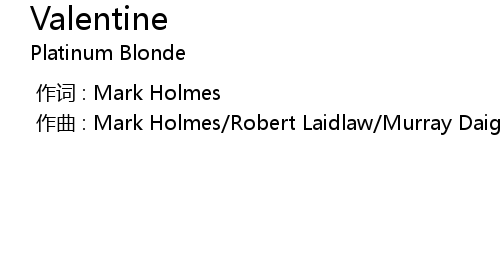 | [00:00.000] | 作曲 : Mark Holmes/Robert Laidlaw/Murray Daigle |