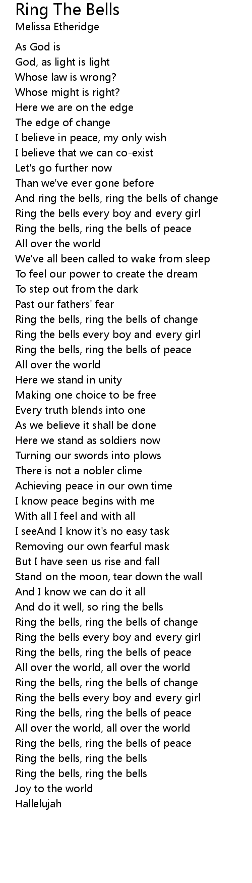 Ring the bells, ring the bells of peace |