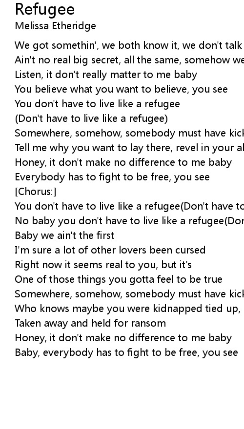 No baby you don't have to live like a refugee(Dont have to live like a refugee) |