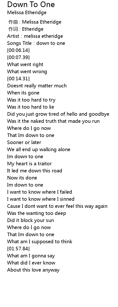 | [00:03.52] | Songs Title:down to one |