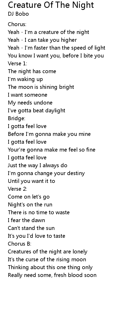 | Yeah - I'm a creature of the night | |
