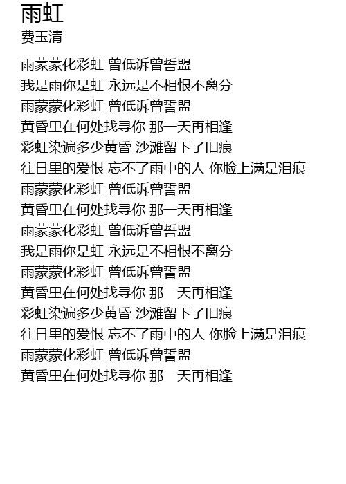 | [01:45.52] | 我是雨你是虹 永远是不相恨不离分 |