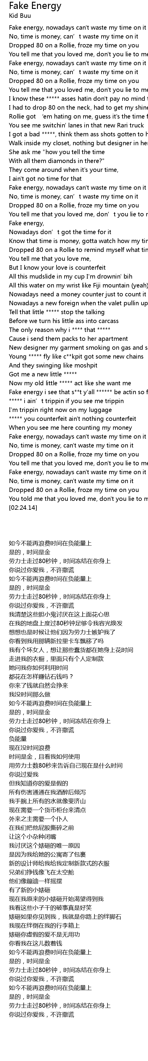 | [01:51.02] | Fake energy i see that s t y' all be actin so funny |