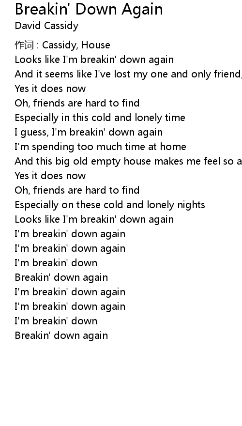 | 歌曲 | Breakin' Down Again |