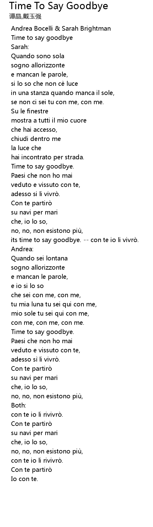 | [01:49.03] | its time to say goodbye. -- con te io li vivrò. |