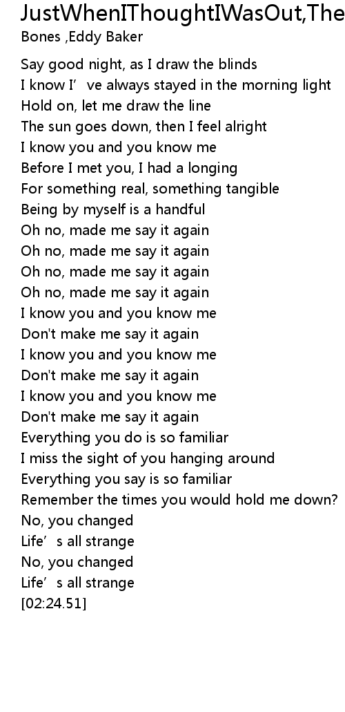 | [01:22.35] | Don't make me say it again |