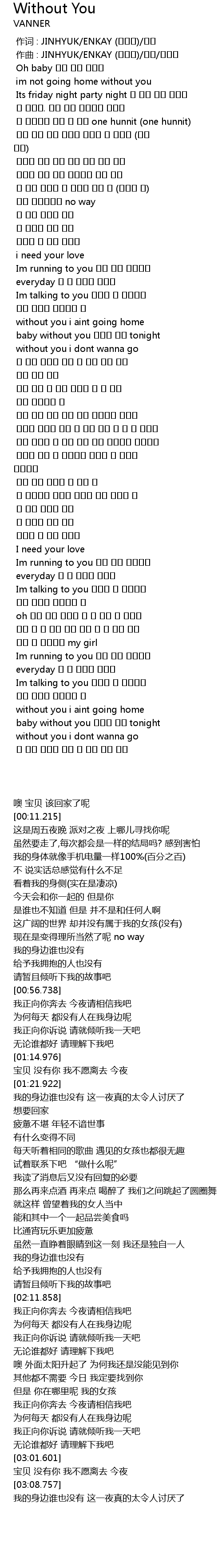 | [01:17.924] | baby without you 떠나기 싫어 tonight |