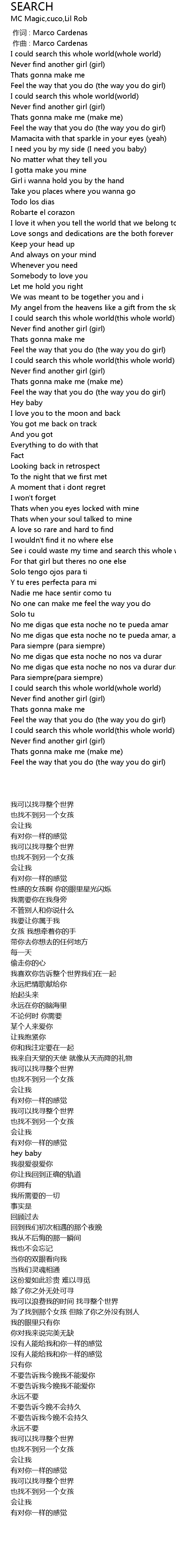 | [03:06.33] | I could search this whole world this whole world |