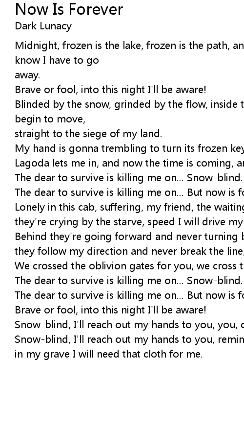 Midnight, frozen is the lake, frozen is the path, and now the time is coming, I know I have to go