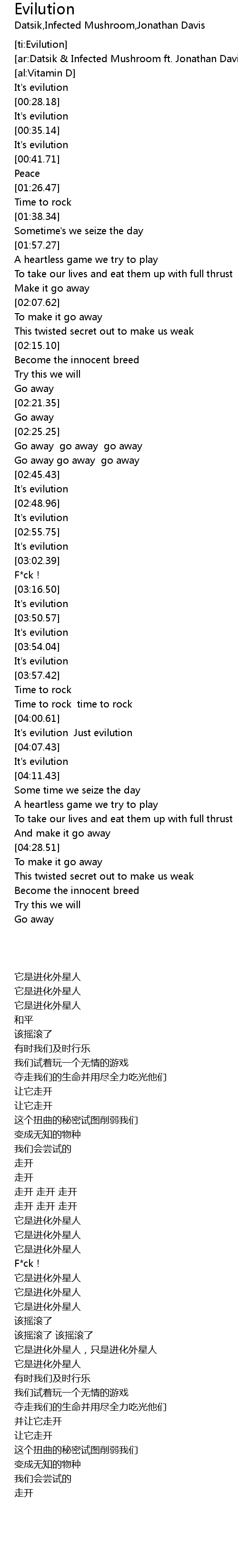 | [04:01.77] | It's evilution Just evilution |