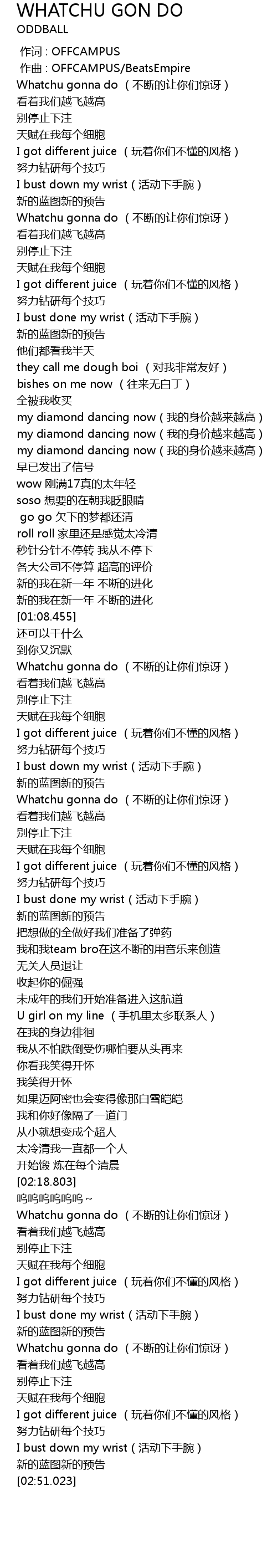 | [02:43.738] | I got different juice (玩着你们不懂的风格) |