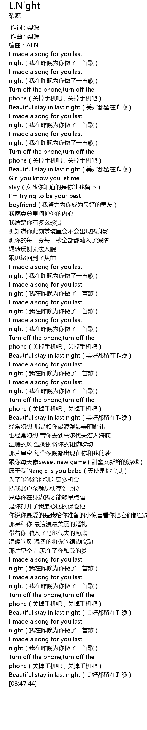| [03:32.54] | I made a song for you last night(我在昨晚为你做了一首歌) |