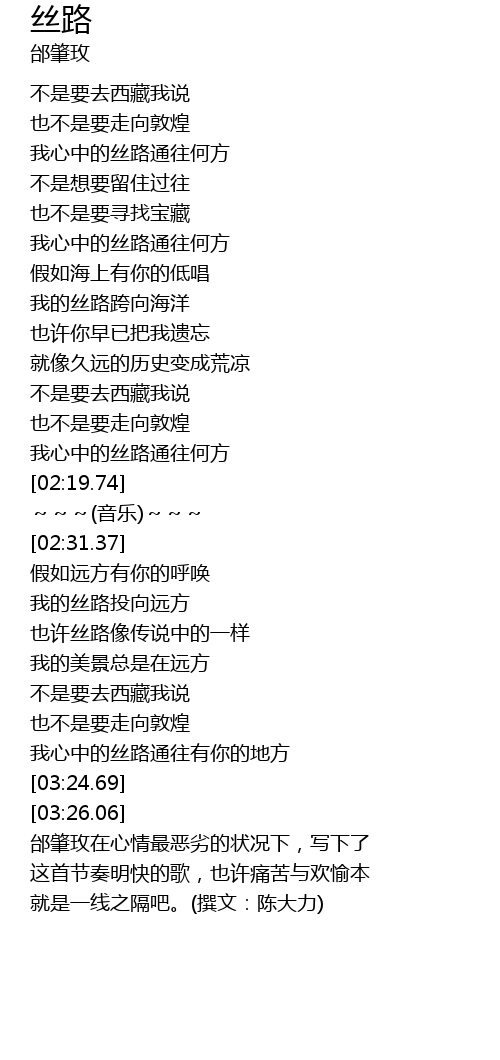 | [02:12.12] | 我心中的丝路通往何方 |