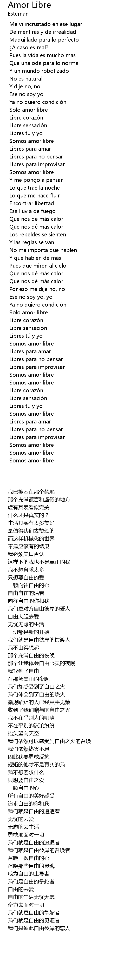 | 歌曲 | Amor Libre |