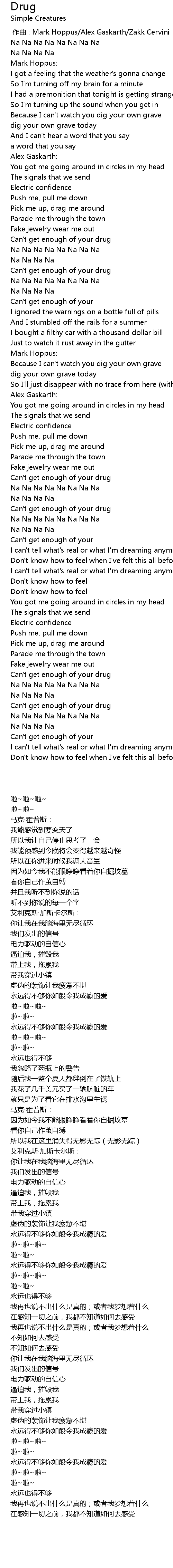 | [02:53.74] | Can' t get enough of your drug |