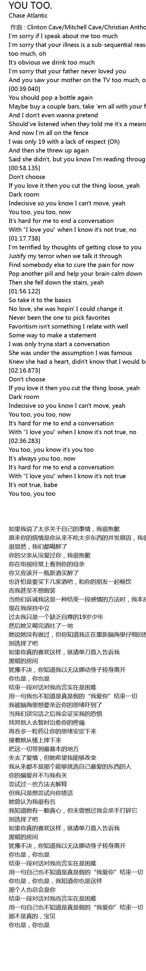 | [02:42.601] | You too, you know it's you too |